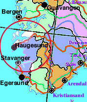 Europastraßen 134 und 39 mit Stavanger und im Norden über